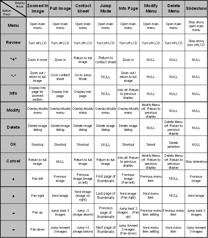 - A dependent criterion of the above is that there is not hard mode switching between "Camera mode" and "Review (Play) mode".