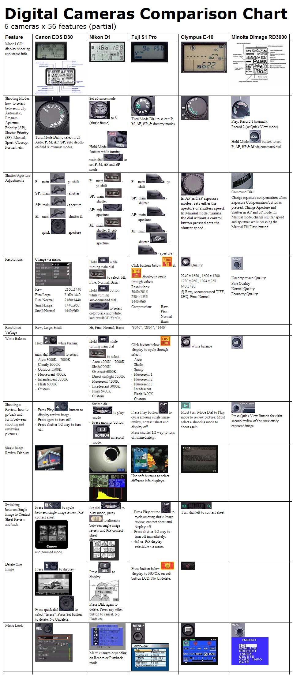 Compared 6 high-end digital camera and broke the analysis down to 65 features points.