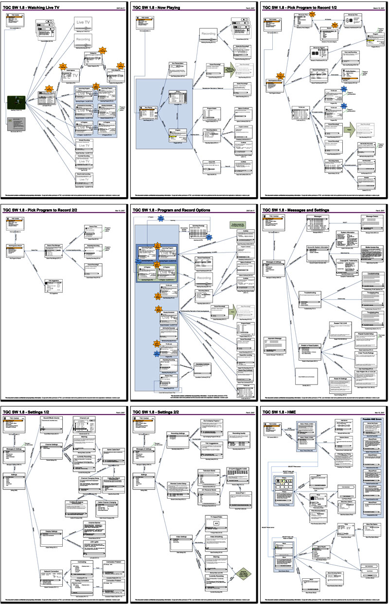 TGC/TiVo UI navigation map - Nine 11x17" pages